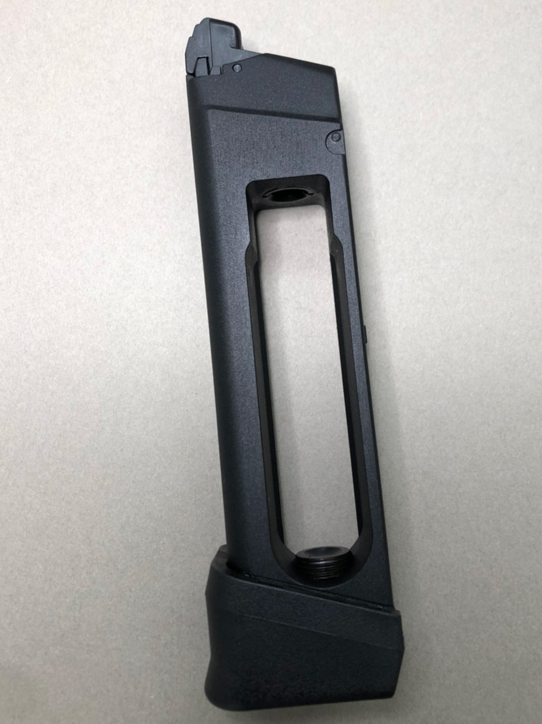 マガジン装弾数は22発。co2ボンベを入れるための穴が開いています。