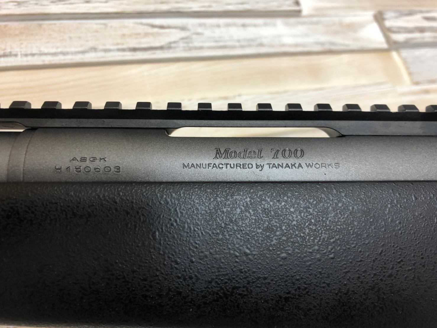 この質感、伝わりますでしょうか?樹脂製のストックですが、いいテクスチャーです。