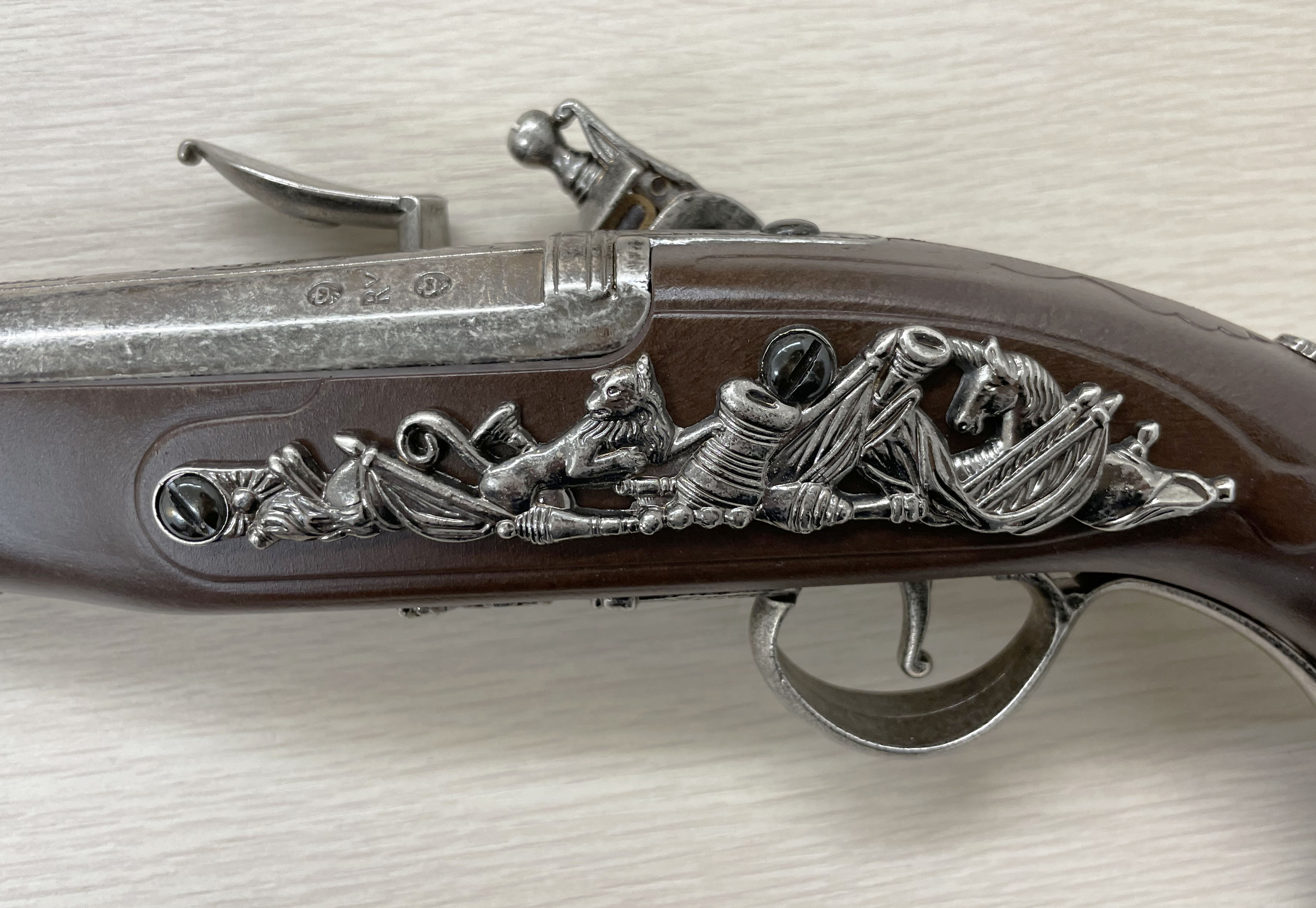 今回紹介するこの銃は、その「フリントロック式銃」の中でも、1770年代にアメリカのジョージ・ワシントン大統領の銘入りで特注された、67口径スムーズボア・フリントロック・ピストルをモデルとしています。
