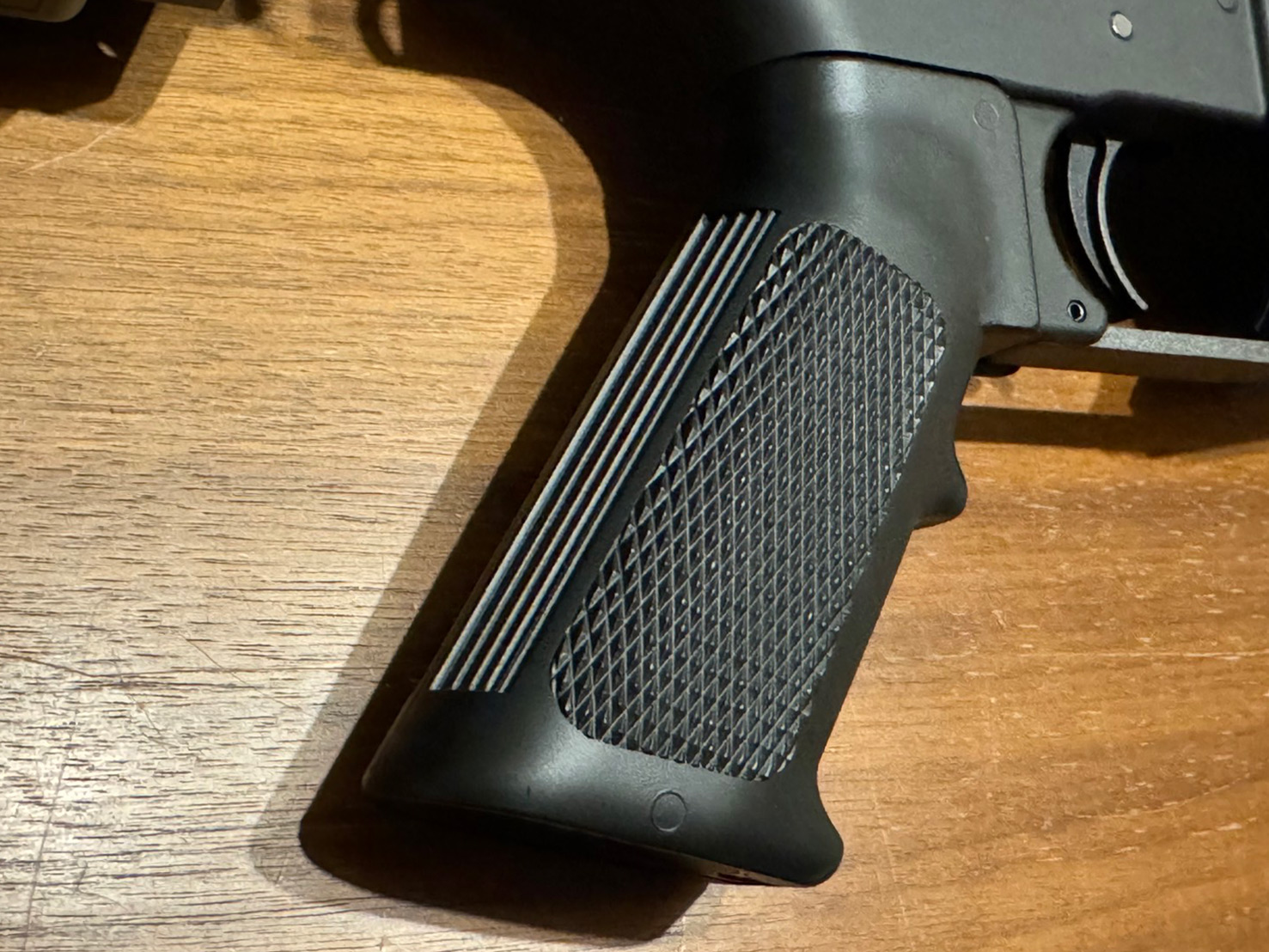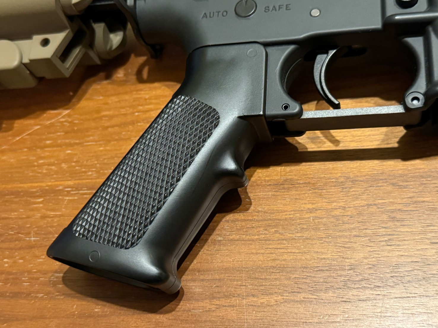 伝統的な形状、中指のフィンガーチャネルは、HK416系ではあまり見かけませんが、M4やSCARについてます。
