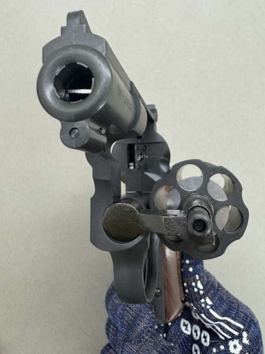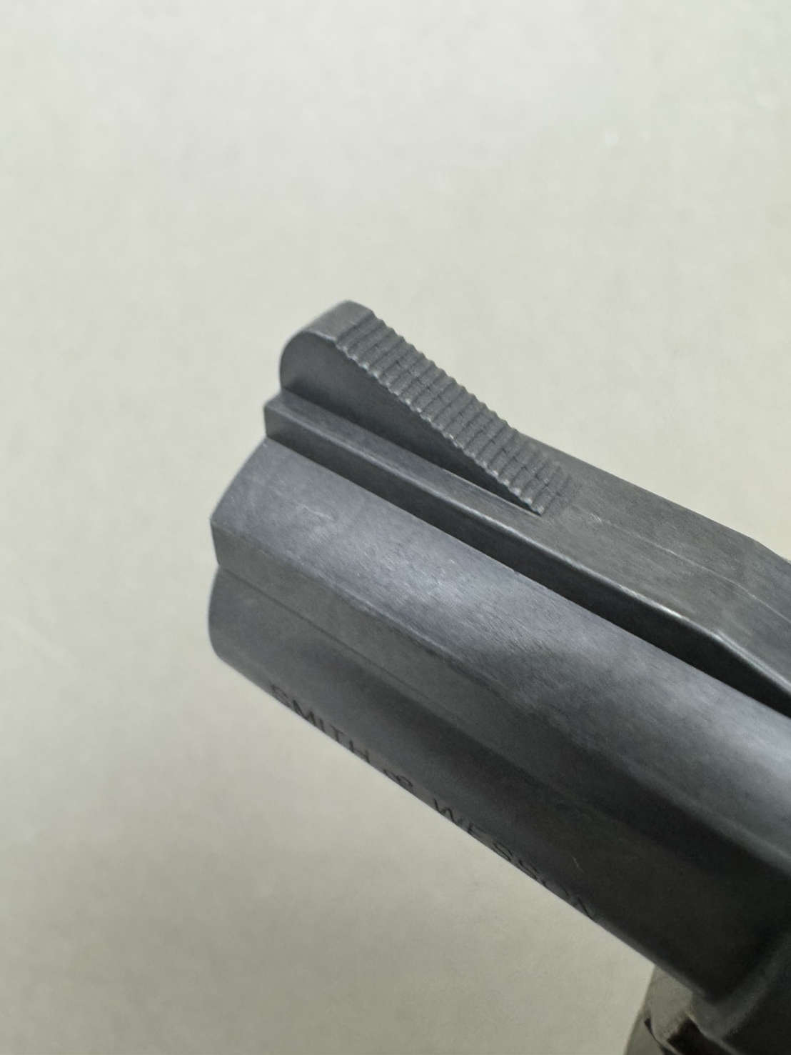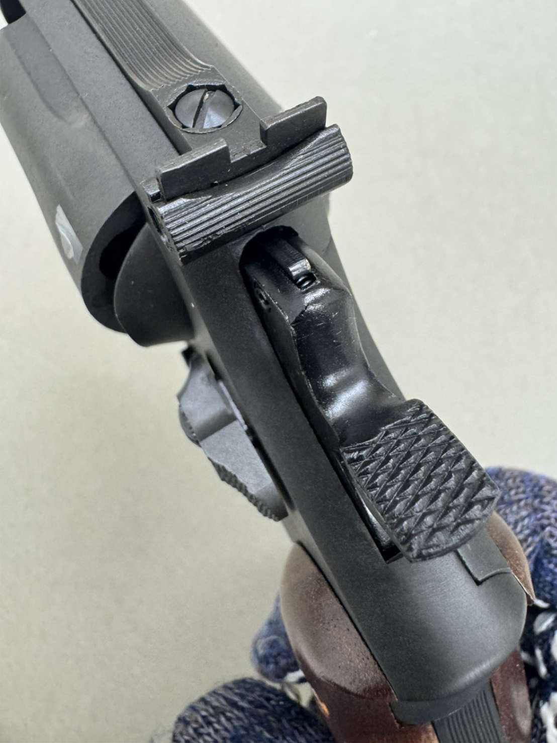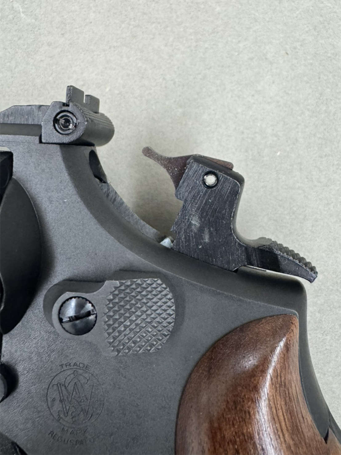 調整式リアサイト、高い命中精度と反動の抑えやすさにより、S&Wリボルバーの中でも特に実用性に優れた「コンバット用リボルバー」として定評があります。