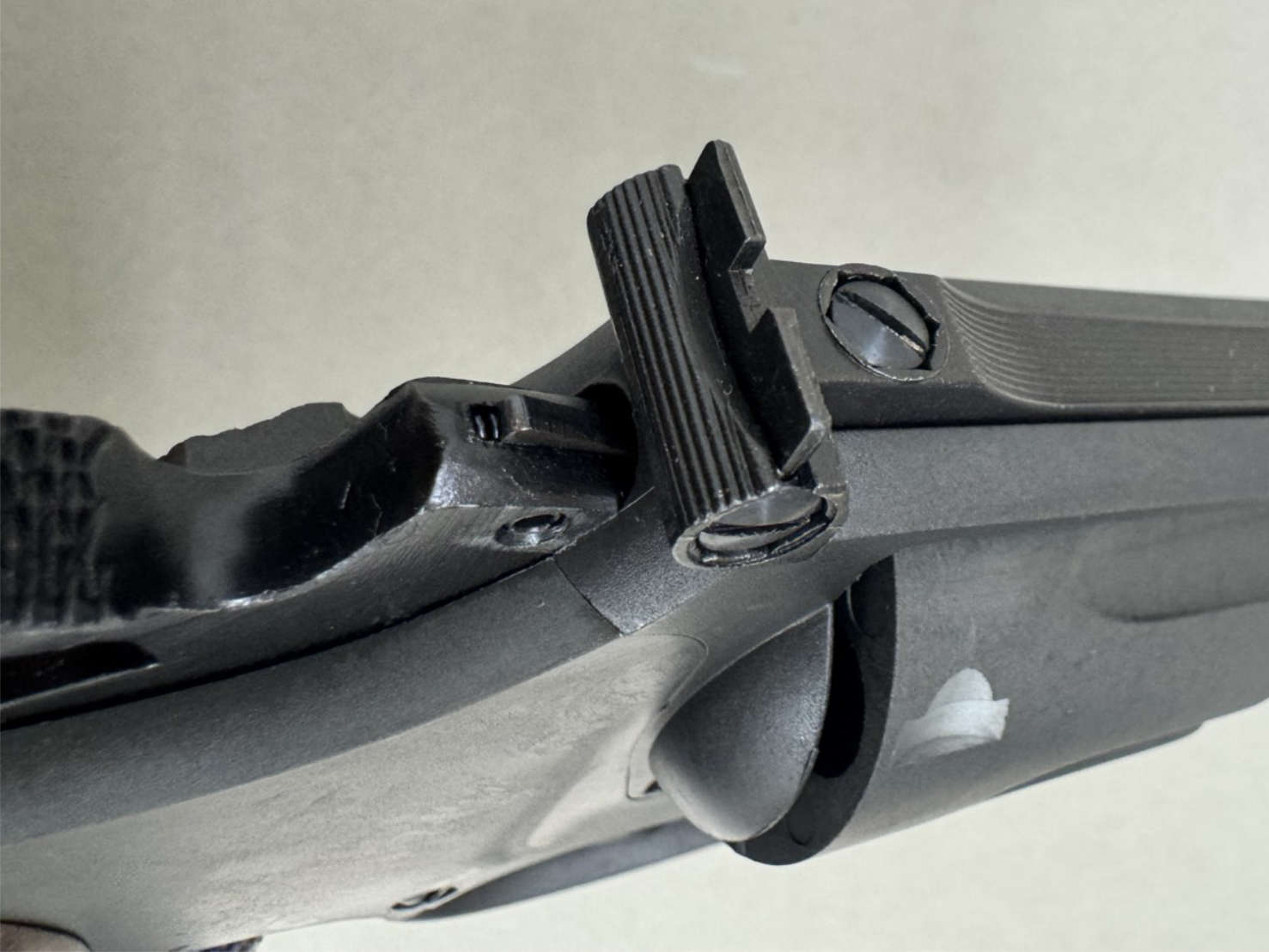 リアサイトは調整が可能。これは同じKフレームのM10にはない機構で、精密射撃を実現します。